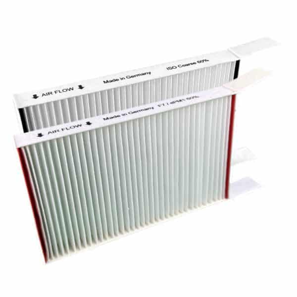 Original AIR2GO Filterset F7 + G4 Filter der Filterklasse ISO ePM1 60% (F7) und ISO Coarse 60%-95% (G4) für Ihre Zehnder Lüftungsanlage Made in Germany. Bestellen Sie hochwertige und preisgünstige Ersatzfilter direkt beim Hersteller. Diese Filter schützen das Lüftungsgerät vor größeren Partikeln und Feinstaub und reinigt die Zuluft von Pollen, Bakterien, Milben etc. (siehe Tabelle "Filterklassen im Vergleich" unten).